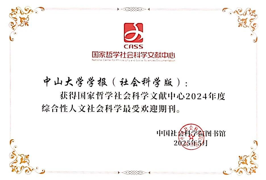 《中山大学学报(社会科学版)》获评“2024年度综合性人文社会科学最受欢迎期刊”