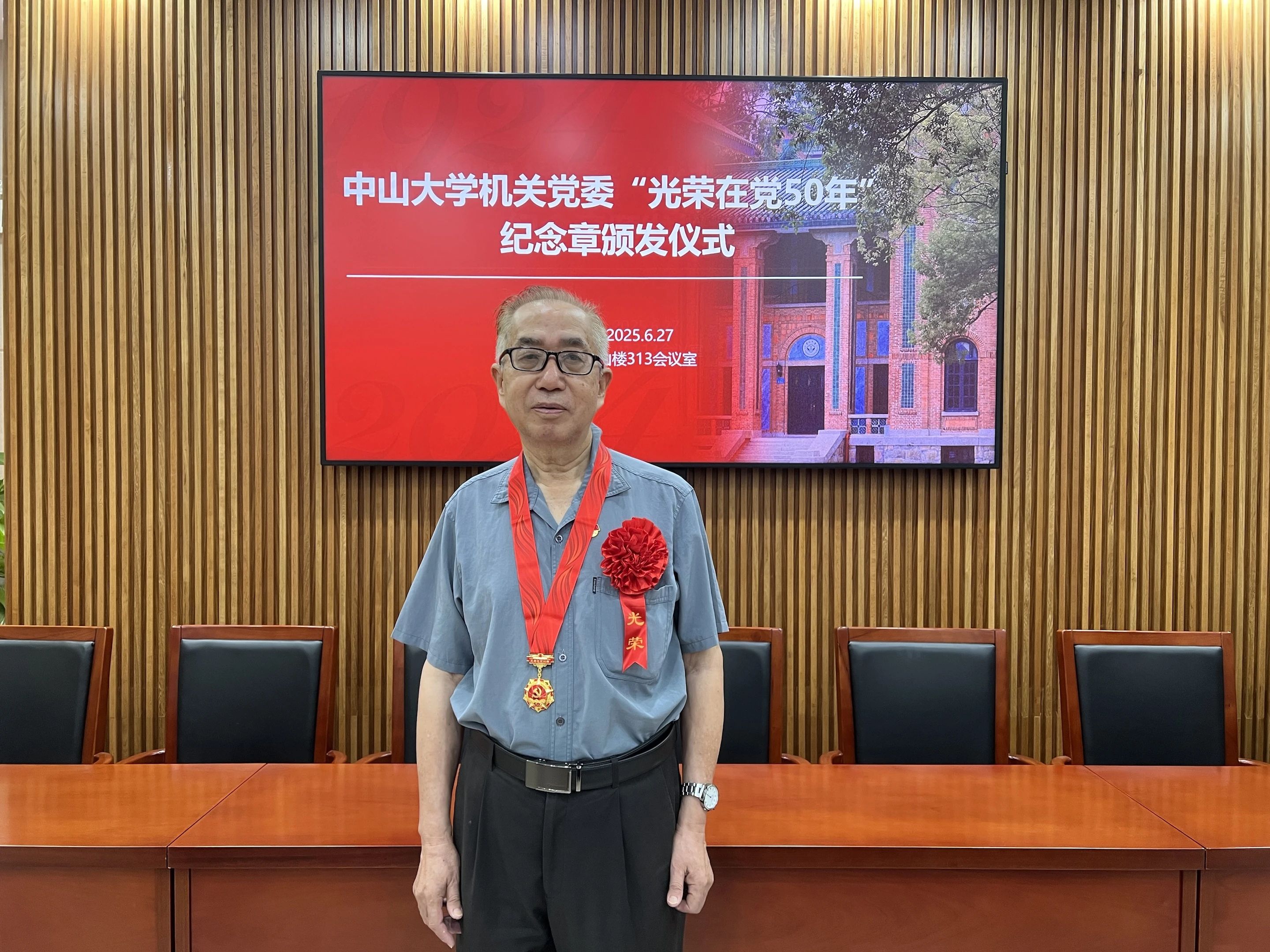 2025年6月27日,中山大学机关党委举行“光荣在党50年”纪念章颁发仪式,学报党支部退休党员张楚民编审获颁纪念章,以表彰他五十年来在党的领导下为学校的学术期刊事业作出的贡献。