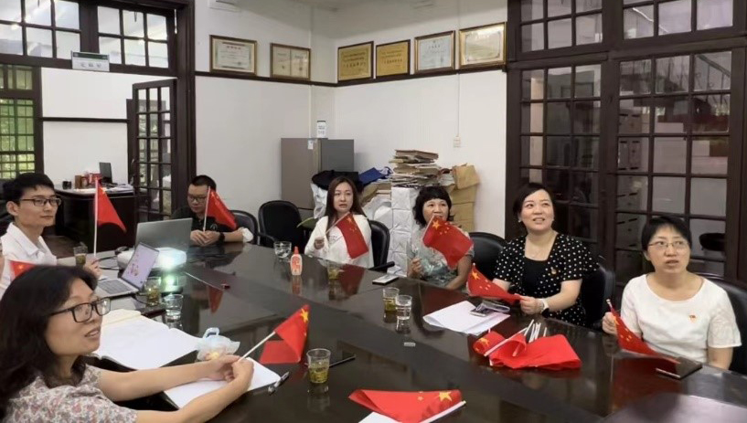 党课学习后,副书记王海蓉通报近期巡视整改工作和关于在离退休教职工中开展“我看中国特色社会主义新时代”“教育这十年”等调研活动。最后,宣传委员周吉梅织专题党日活动:唱红歌学习百年党史。伴随着《唱支山歌给党听》《春天的故事》这些熟悉而优美的旋律响起,大家挥舞着手中的红旗,中国共产党发展历程的一幕幕仿佛再次出现在眼前,让人激动,让人骄傲。