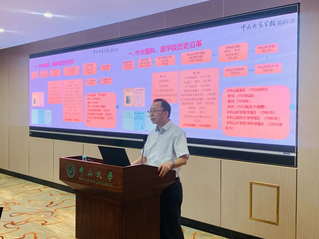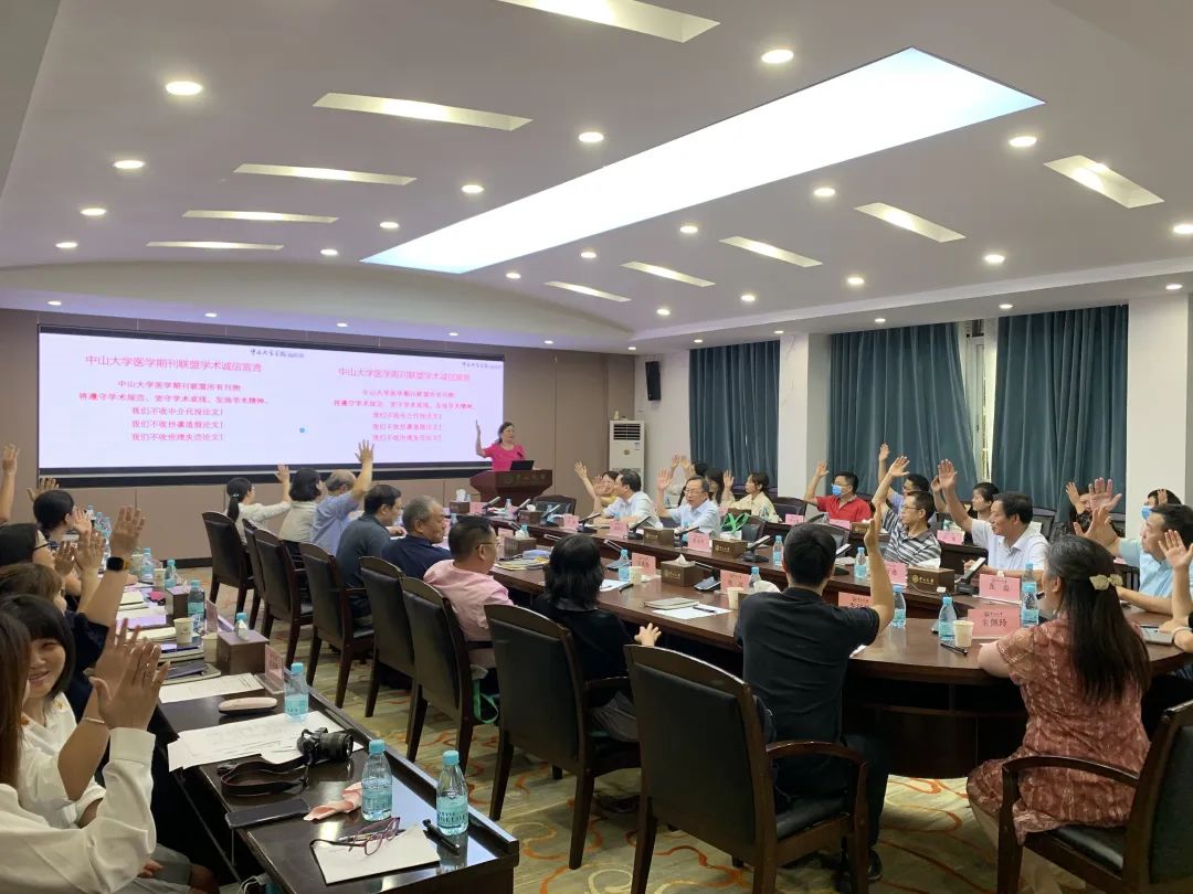 2022年10月22日下午,“《中山大学学报(医学科学版)》高质量期刊建设研讨会暨中山大学医学期刊联盟成立大会”在北校园外宾接待室隆重举行。本次活动由中山大学学报编辑部(期刊管理中心)主办、《中山大学学报(医学科学版)》编辑部承办。广东省委宣传部出版处陈建新调研员、广东省科技厅实验室与平台基地处彭丹调研员和广东省科学技术期刊编辑学会理事长吴惠勤出席会议。参加会议的还有《中山大学学报(自然科学版)》主编胡建勋、副主编张冰;中山大学主办、承办和协办的24家医学期刊代表。
