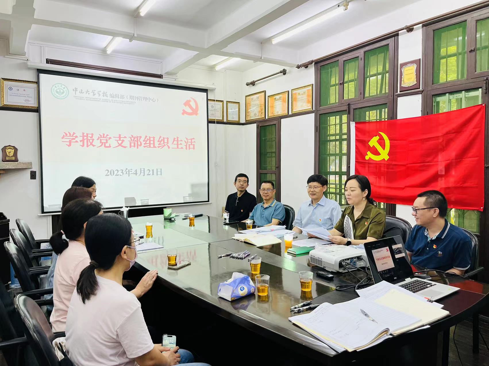 余菁书记在会上汇报了学报支部2023年度党员发展工作情况。根据《机关党支部2023年4月组织生活要点》要求,支部党员在会上重点学习了《中山大学2023年党的建设和全面从严治党工作要点》和《中山大学2023年工作要点》等要点内容。