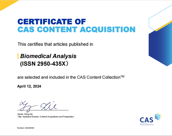 喜报 | Biomedical Analysis 被美国化学文摘(CAS)数据库收录