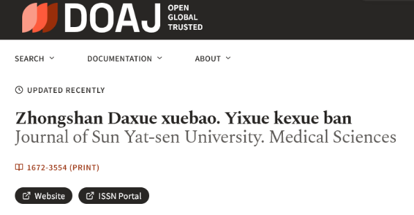《中山大学学报(医学科学版)》入选DOAJ国际数据库