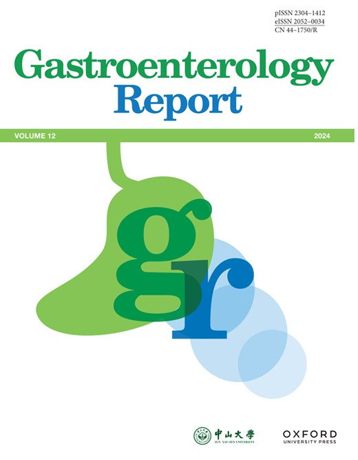 ▲ Gastroenterology Report(胃肠病学报道),ISSN 2052-0034、CN 44-1750/R,创刊于2013年,双月刊,教育部主管、中山大学主办,汪建平教授主编。2017年被SCIE收录,2023年影响因子3.8,位列JCR Q2区首位(37/143)。